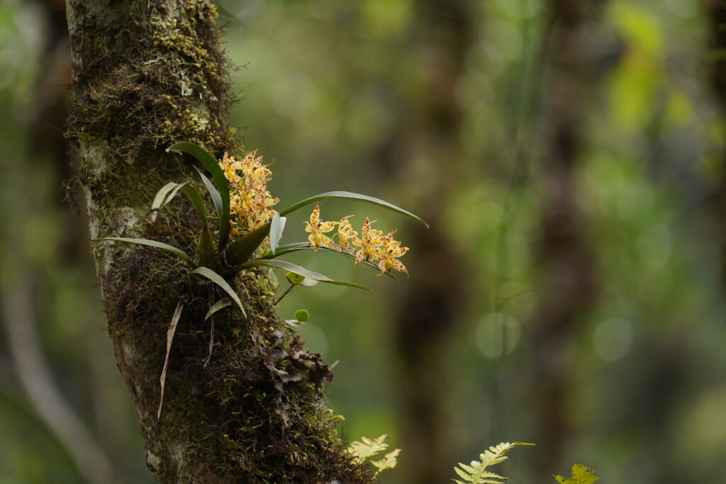 The Elfin forests are located at elevations between 2,200 and 1,650 meters. This area features trees that can reach up to 25 meters in height, often adorned with orchids and ferns thriving on the walls of deep precipices. Characteristic broad-leaved Araceae and tree ferns dominate this region. The climate is cool, and the landscape is consistently shrouded in shadows and mist, creating a perpetually damp environment..
