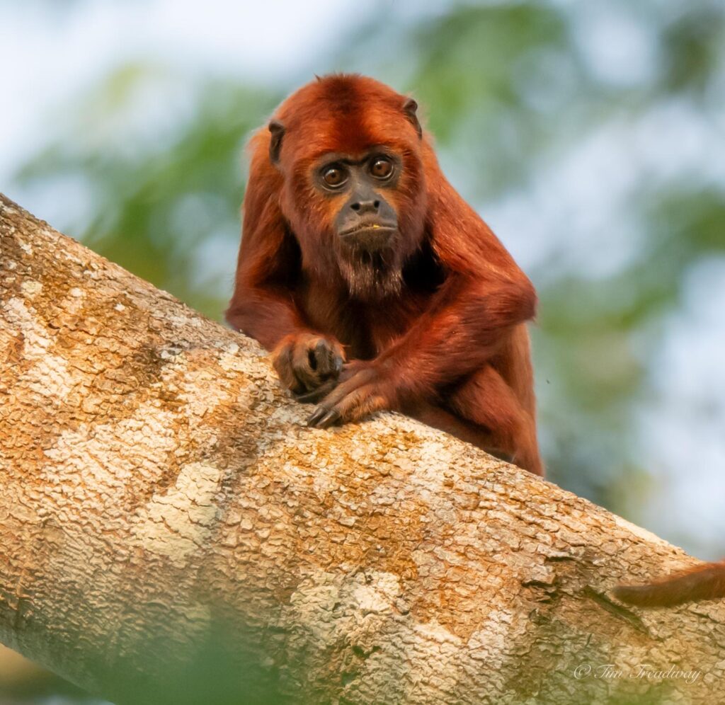 In the early morning, we transition from the clean waters of the Madre de Dios River to the clay-laden Manu River, stopping briefly at the Limonal ranger station to present permits. We will navigate upstream by boat for five hours, particularly during the dry season when the river is abundant with nesting birds and feeding herons, egrets, Orinoco geese, terns, and skimmers. Beaches along the route may feature sunbathing White and Black caimans (Melanosuchus niger) and breeding Yellow-spotted River turtles (Podocnemis unifilis). Daytime roosts may include hundreds of Sand-colored Nightjars, with potential sightings of Jaguars (Panthera onca), the world’s third-largest cat. Various primate species, such as Red Howler monkeys, Squirrel monkeys, and Tamarins, may also be observed. The afternoon is allocated for exploring rainforest trails, and an optional night walk will be available to search for nocturnal wildlife. We will overnight at Jaguar Ecolodge, a new facility managed by Amazon Wildlife Peru, offering comfortable accommodations with fine furniture, spacious rooms, and mosquito-netted beds.Breakfast, Lunch, Dinner